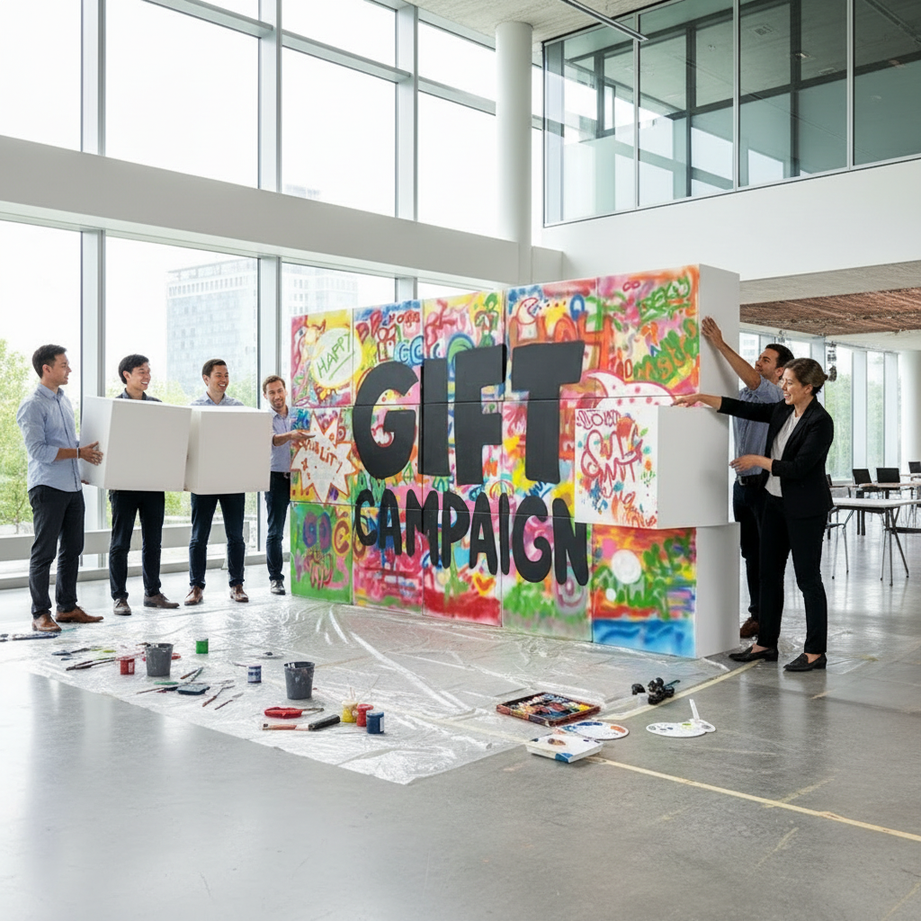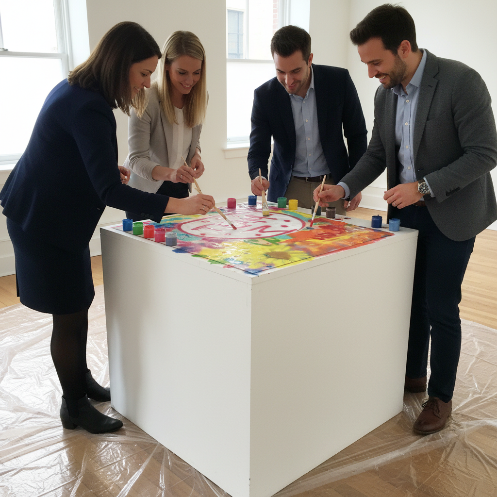 ¿Te imaginas trabajar con tu equipo para dar vida a un mural único que luego deben montar como un rompecabezas? Nuestra actividad combina arte, estrategia y trabajo en equipo en una experiencia inolvidable. Cada participante aporta su creatividad para formar parte de un resultado colectivo: un mural que esconde el logo de la marca.